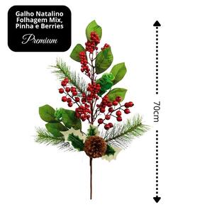 Galho Natalino Decorativo Folhagens Mix Premium com Pinha e Berries Vermelhos – 70cm