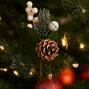 Seu tamanho compacto permite decorar árvores de Natal, guirlandas, arranjos de mesa, vasos e enfeites artesanais, trazendo um toque rústico e elegante ao ambiente. A haste firme e moldável facilita a fixação em diferentes decorações.