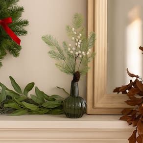 -Berries brancas e 1 pinha decorativa para um toque natural e delicado