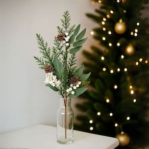 Adicione um toque rústico e elegante à sua decoração de Natal com o Galho Natalino Nevado. Composto por folhagens detalhadas, 3 mini pinhas e berries brancos com efeito nevado, este enfeite transmite charme e sofisticação, sendo ideal para compor arranjos, decorar guirlandas, centros de mesa ou complementar a decoração da árvore de Natal.