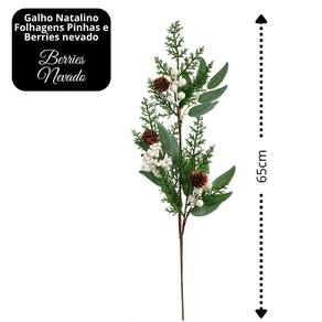 Galho Natalino com Folhagens, Pinhas e Berries Nevado – 65cm