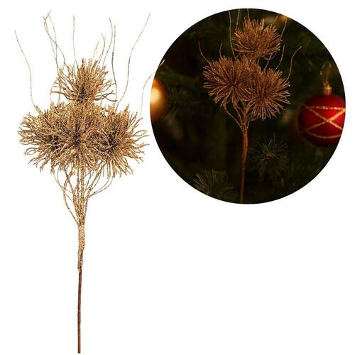 1 Galho Haste Natalino com 4 Buchinhos Glitter Bronze