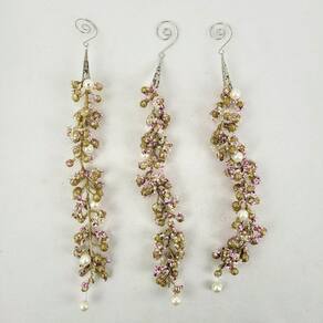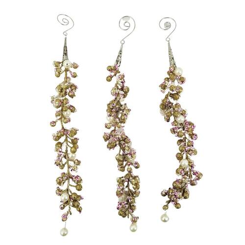 Galho Pérolas Rosa E Dourado 33x3cm Folhagem De Natal 3pc Vem decorar, seja INIGUAL
