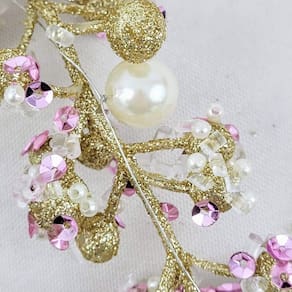 Galho Pérolas Rosa E Dourado 33x3cm Folhagem De Natal Vem decorar, seja INIGUAL