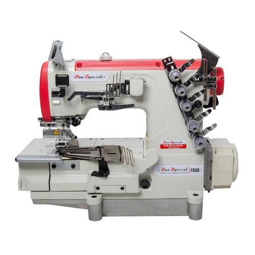 Galoneira Industrial de base plana aberta 3 agulhas com motor eletrônico direct drive. Motor economiza até 70% de energia. Função automática de parada de agulha em cima ou embaixo. Sistema de transporte simples. Tamanho do ponto de 1 a 4,4mm. Sistema de lubrificação automática. Motor Direct Drive 550W. Utilizada para fazer barras, pregar golas, mangas e punhos em camisetas. Furação para aparelhos de viés, barra e viés sobreposto. Pode ser utilizada com menos agulhas/fios. Sistema de refrigeração da agulha e linha por silicone. Tampo emborrachado e estante com rodinhas.Alça retrátil