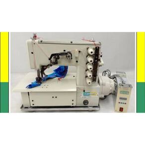 Esta máquina é acionada por moderno servo-motor diretamente acoplado ao cabeçote da máquina . Máquina de costura industrial tipo galoneira como motor Direct drive. Aplicação para bainha, debrum (colarete) e rebatimento de elástico.