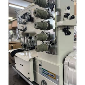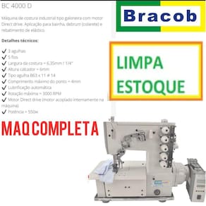 Máquina de costura industrial tipo galoneira com motor Direct drive. Aplicação para bainha, debrum (colarete) e rebatimento de elástico.Detalhes técnicos: 3 agulhas 5 fios Largura da costura = 6,35mm / 1/4? Altura calcador = 6mm Tipo agulha B63 x 11 # 14 Comprimento máximo do ponto = 4mm Lubrificação automática Rotação máxima = 3000 RPM Motor Direct drive (motor acoplado internamente na máquina) AUTOVOLT Potência = 550w COMO É ENVIDADO O PRODUTO:- Cabeçote completo com porta fios;- Estante desmontada composta por: Tampo de madeira revestido em fórmicaimpermeável, Pé de ferro pintado por imersão e acessórios paramanutenção.EMBALAGEM:- Mesa medindo 0,50 x 1,10 x 0,75 = 0,4125m3;- Cabeçote na caixa medindo 0,34 x 0,48 x 0,46 = 0,075m3;- Volume total = 0,57m3;- Peso real = 65kg- Peso cubado para transporte = 135kg