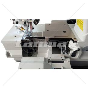 Galoneira base pana eletrônica direct drive, 03 agulhas e 05 linhas. Possui função automática de corte de linha, levantamento de calcador e posicionador de agulha em cima e embaixo que proporciona o aumento da produtividade por dispensar o manuseio do volante pelo operador.
