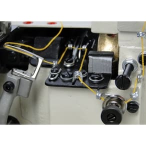 Descrição da máquina + Acompanha 1 kit de acessórios: 1 - Aparelho de viés 1 - Luminária de LED com haste flexível 1- Aparelho Elástico Mexicano 1- Suporte de Rolos Máquina de costura tipo galoneira. Aplicação para bainha, debrum (colarete) e rebatimento de elástico. DETALHES TÉCNICOS: 2 agulhas; 3 fios; Largura da costura = 6,35mm; Altura calcador = 6,0mm; Tipo de Agulha DVx63; Comprimento máximo do ponto = 4mm; Lubrificação manual com buchas auto-lubrificantes a base de grafite e eixo central acoplado em 2 rolamentos; Buchas da barra de agulha em bronze sinterizado; Rotação máxima = 2000 RPM; Motor = 7000 – 9000RPM; Potência 400w Motor acoplado à máquina; A MONTAGEM É FEITA POR CONTA DO COMRPADOR !