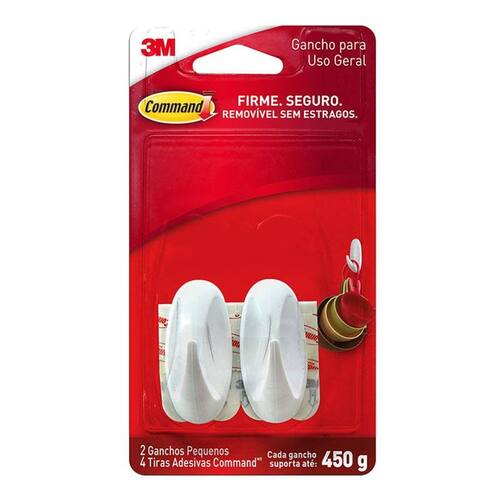 Gancho adesivo design Command branco pequeno 2 unid H0002040873 - 3M