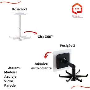Mantenha sua cozinha mais organizada Esqueça-se dos momentos em que suas colheres grandes, espátulas, fuê, facas e outros utensílios ficavam todos juntos e bagunçados numa gaveta desorganizada. O gancho multiuso giratório é resistente, firme e não danifica seus móveis, otimize seu tempo na cozinha e a deixe mais linda e organizada Você pode fixá-lo no teto ou na parede, em armários perto de sua pia ou em qualquer lugar em sua casa para pendurar qualquer produto.