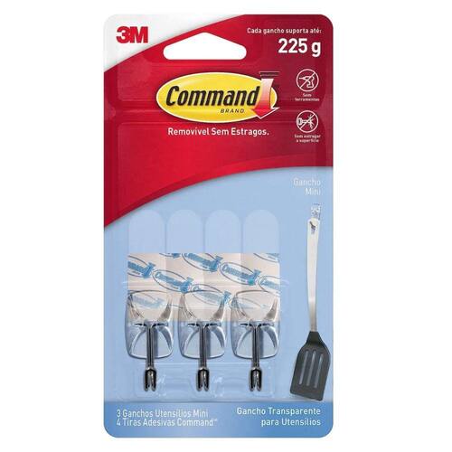 Gancho command utensílios transp (3 pcs) R:HB0042700532Detalhes:Decora e organiza sua casa de forma práticaNão estraga as paredes, servindo para pendurar sem furarNão deixa resíduosGancho para pendurar fácil de aplicar e ser removidoDisponível em uma variedade de cores e estilos, dando a você várias opções para cada ambiente em sua casaGarantia: NãoOrganize e pendure o que quiser e quando quiser! O Gancho Adesivo 3M Command™ Utensílios de Cozinha é um adesivo removível com ganchos para decorar e organizar a sua casa de forma prática, sem sujeira e sem furos na parede. A tecnologia do adesivo Command™ permite trocar o gancho de lugar sem danificar as paredes. Este gancho 3M é especialmente indicado para organizar seus utensílios de cozinha.Sem deixar resíduos e sujeira, o Gancho Adesivo 3M Command™ Utensílios de Cozinha pode ser aplicado em várias superfícies. Ele é muito fácil de ser colocado e pode ser grudado e desgrudado da forma que você quiser, sem danificar a parede. É ideal para superfícies como paredes pintadas, vidros, azulejos, madeira e metal. Cada embalagem contém três ganchos para utensílios pequenos com quatro adesivos, sendo que cada um suporta até 225 g. O Gancho Adesivo 3M Command™ Utensílios de Cozinha está disponível em vários desenhos para combinar com sua decoração e seu estilo. Também pode ser encontrado em diversos tamanhos, segurando uma quantidade surpreendente de peso – dependendo do modelo, até sete quilos e meio! Esqueça os pregos, parafusos e tachas: esses ganchos adesivos 3M são rápidos e fáceis de pendurar, podem ser utilizados em diversas superfícies e são removidos de forma limpa sempre que você desejar. Como usar: Para aplicar estes ganchos de parede, limpe a parede com álcool e um pano seco. Não use produtos de limpeza, aerossóis ou toalhinhas de limpeza, pois elas deixam um resíduo escorregadio que impede a aderência. Separe as tiras e remova o recobrimento do adesivo. Pressione a tira sobre a parte posterior do gancho. Agora, pressione o gancho firmemente contra a parede ou superfície durante mais ou menos 30 segundos. Quanto maior for a pressão, mais forte será a adesão. Para que realmente exista uma aderência, você tem que deslizar o gancho para cima, fora da base de montagem. Você tem algum gancho pequeno ou de uma só peça? Se a resposta for sim, omita os passos restantes, mas não esqueça de esperar uma hora antes de pendurar qualquer coisa no gancho. Depois, pressione a base firmemente contra a parede durante 30 segundos. Deslize o gancho outra vez pela superfície da base e espere uma hora antes de pendurar algum artigo. Isso permitirá que a união adesiva fixe corretamente na superfície ou parede e assim atinja a máxima resistência. Verifique sempre na embalagem os limites de peso corretos de cada Gancho Decorativo Command™.Aplicações sugeridasEspecialmente indicado para organizar seus utensílios de cozinhaPode ser aplicado em diversas superfíciesCodigo: 45857Marca: 3M