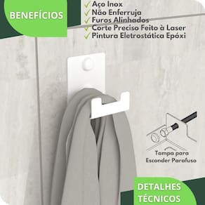 Com um design minimalista, o preferido pelos arquitetos nos últimos tempos, o Gancho de Parede é fabricado utilizando aço inox com acabamento em Pintura Eletrostática Epóxi proporcionando maior durabilidade, resistência e garantindo que não ocorrerá oxidação nem ferrugem.