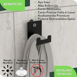 Ótimo para fixar em superfícies lisas, vidros de box e espelhos
