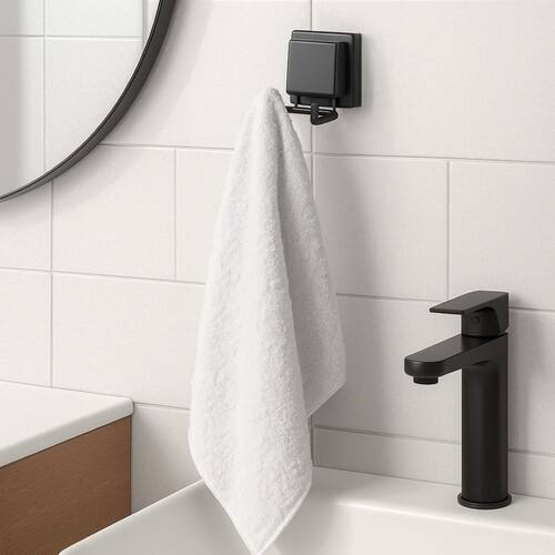 Gancho Duplo Suporte Multiuso Ventosa Preto Fosco Banheiro