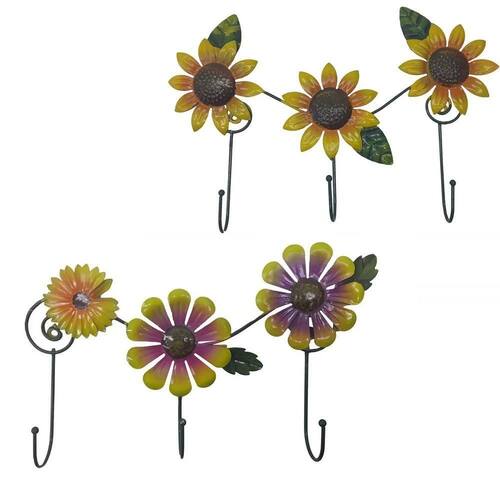 Cada unidade do produto tem 3 ganchos de metal, cada um com flor decorativa, pintada