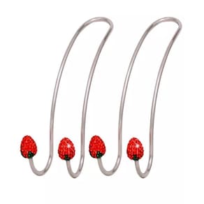 Material: Aço inoxidável. Cor: Prateado com detalhe de morango em strass Tipo: Organizador Tamanho: 115x32x30mm Peso: 51 g/conjunto um conjunto de 2 unidades *Pacote inclui 2 dois ganchos organizadores de banco traseiro automotivo*