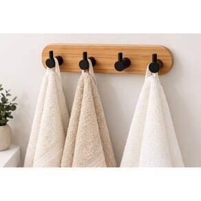 Organize seu ambiente com elegância e praticidade com o Gancho Organizador Adesivo de Bambu e Metal Sem Furo Jolitex Mek. Com design moderno que combina bambu natural e ganchos metálicos pretos, ele traz um toque sofisticado para qualquer espaço — do banheiro ao hall de entrada.