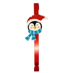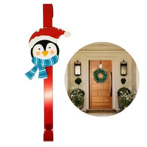 -01 Unidade Gancho Suporte para Guirlanda com Encaixe de Porta – Figura Natalina Rosto de Pinguim Natal em Mola, Metal Premium Vermelho 37cm