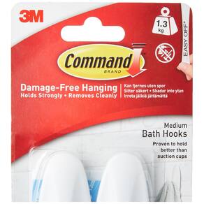 Command Ganchos de banho de designer, médio, branco, 2 ganchos com tiras resistentes à água (17081B-ES), organize seu dormitório