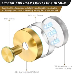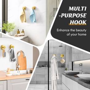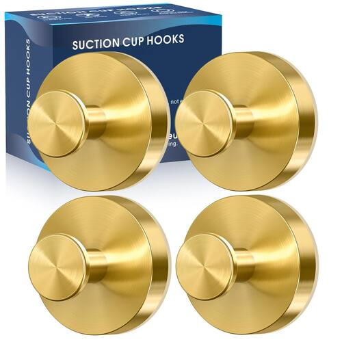 Ganchos de ventosa MOTAIPEAK para chuveiro, ganchos de sucção removíveis para parede de banheiro, cozinha, vidro, espelho, azulejo para pendurar roupões, dourado (pacote com 4) -?Reutilizável e removível?O luxuoso gancho para chuveiro é feito de material durável de aço inoxidável 304 à prova d'água e à prova de ferrugem. Facilmente removível girando o botão no sentido anti-horário para soltar e usar uma faca. Lavar o fundo de sucção pode ser utilizado repetidamente -?Forte capacidade de carga?Considerando a estabilidade de pendurar objetos pesados, a base do gancho de sucção do chuveiro é feita de silicone superpegajoso Base. Girando o botão no sentido horário para liberar o ar na base e aumentar a pressão da ventosa, de modo a obter um efeito de sustentação de peso muito forte. A capacidade máxima de carga é de 11 libras -?Fácil instalação?Não precisa se preocupar com danos na parede durante a instalação. Basta girar o botão no sentido anti-horário para fixar e pressionar o roupão e os ganchos de toalha na parede, depois girar o botão no sentido anti-horário para fixar e pressionar o roupão e os ganchos de toalha na parede e girar o botão no sentido anti-horário Para concluir a instalação, etapas detalhadas podem ser visualizadas nas instruções -?Praticidade com moda?Os ganchos de sucção para parede de chuveiro podem criar mais armazenamento espaço em sua casa instalando-o, que tem uma aparência luxuosa e premium combinada com praticidade, não apenas para armazenamento, mas também como decoração para enriquecer a beleza de seu banheiro -?Superfícies aplicáveis?As informações devem ser fornecidas antes da instalação. O gancho para toalhas de banho só funciona em superfícies secas e lisas, como vidro, espelho, azulejo, mármore, metal e outras superfícies lisas. O gancho de toalha com ventosa não pode ser adequado para superfícies rugosas, papel aquático e paredes pintadas