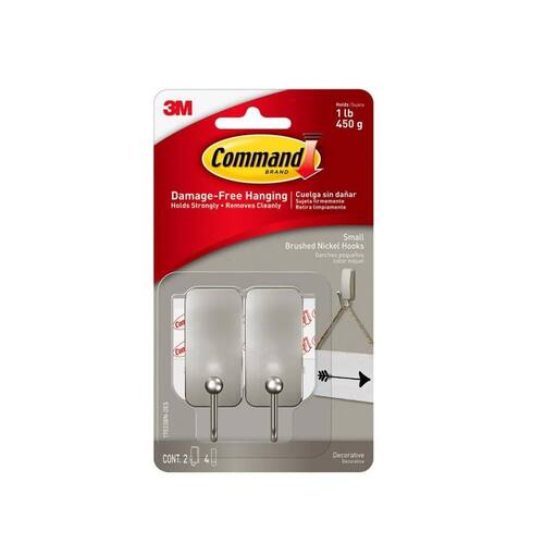 Ganchos decorativos Command 3m 17033bn-2es, níquel escovado -
