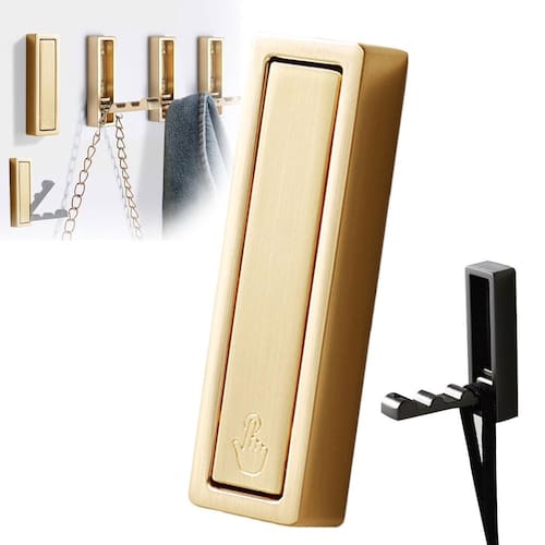 - Design dobrável versátil: o design inovador de nossos ganchos de parede retráteis de liga de zinco permite uma rotação e dobragem convenientes de 90°. Quando não estão em uso, esses ganchos podem ser facilmente guardados para economizar espaço, tornando-os perfeitos para áreas compactas, como banheiros, armários e entradas.