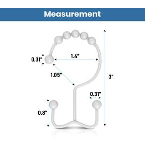 Gancho de cortina de chuveiro - Conjunto de 12 anéis de chuveiro – com um design elegante e reflexivo, nossos ganchos de varão de cortina de 12 peças se ajustam a um tamanho de grade padrão. Simples e elegante, é adequado para banheiros primitivos e contemporâneos. - Resistente e à prova de ferrugem – os ganchos de cortina de chuveiro são feitos de 100% aço inoxidável e são antiferrugem e resistentes à corrosão. - Deslizamento sem fricção – as cinco bolas esféricas sobre os ganchos de cortina de chuveiro ajudam você a deslizar a cortina ou o forro sem esforço pela haste da cortina sem arranhá-la. - Design de ganchos duplos – os anéis de cortina de chuveiro têm um design de dupla face que permite que você pendure a cortina de chuveiro e o forro simultaneamente. Também permite a substituição sem esforço de quaisquer dois lados preventivos. - Fácil de instalar: os ganchos de chuveiro para chuveiro interno permitem que você pendure ou remova sua cortina ou forro sem esforço em questão de minutos sem ter que se preocupar em prender ou puxar.