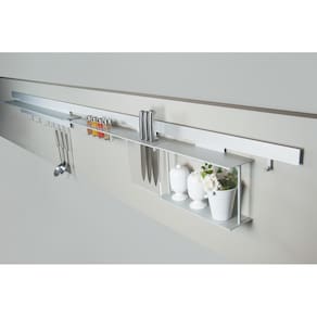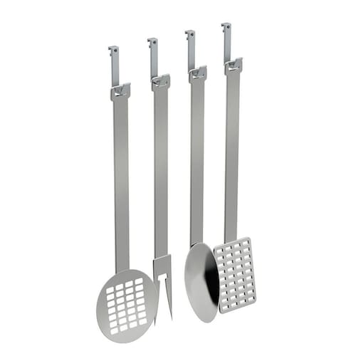- Linha: Linha Aérea Flow - Zen Design. - Material: Alumínio. - Cor: Anodizado Alumínio Fosco. - Itens Inclusos: 3 Ganchos. - Utilização: Este produto é encaixado ao Perfil de Acessórios, servindo de gancho para utensílios em geral, conforme informações do fabricante. - Sistema de encaixe próprio. Fixação parafuso Allen.