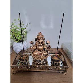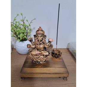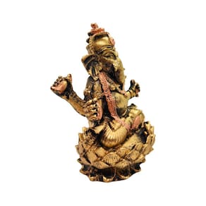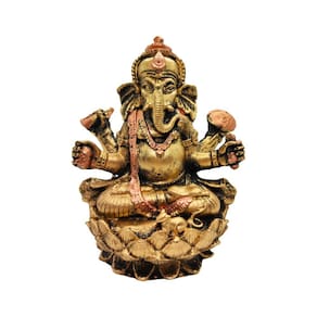A figura de Ganesha, o deus hindu associado ao sucesso e à remoção de obstáculos, é representada de forma majestosa nessa estátua. A combinação da sabedoria de Ganesha com a pureza da flor de lótus traz à tona um símbolo de renovação e superação. Cada detalhe esculpido nesta peça é uma homenagem à mitologia rica e à espiritualidade hindu.