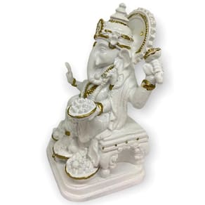 Ganesha Prosperidade Branco em Resina 15 cm Ele é filho dos deuses Shiva e Parvati e representa o intelecto, a sabedoria, a fortuna e a prosperidade. Na tradição hindu, Ganesha é também conhecido como Vighneshvara no sânscrito, que significa deus dos obstáculos ou dificuldades. Além de servir como decoração, essa linda escultura em resina de alta qualidade, pintura artesanal e acabamento rico em detalhes pode ser um ótimo presente para homenagear pessoas especiais.