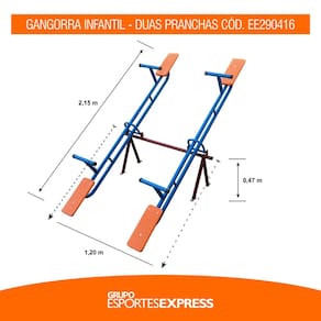 Fabricada com ferro resistente e madeira tratada, oferece durabilidade mesmo sob condições climáticas adversas.Com uma ou duas pranchas para diferentes configurações de uso, é ideal para parques, escolas e áreas de lazer.Suas características técnicas incluem medidas precisas para garantir estabilidade e segurança durante o uso.A montagem é simples e rápida, seguindo as instruções inclusas.Proporcione momentos de alegria e desenvolvimento motor com esta gangorra de qualidade.