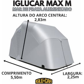 A INSTALAÇÃO EM CONDOMÍNIOS PODE DEPENDER DE AUTORIZAÇÃO . CONSULTE O SÍNDICO ANTES DE COMPRAR. Proteja seu veículo com a Garagem Retrátil Iglucar – Linha Mar de Prata Aluminizada. Fabricada com material resistente e acabamento aluminizado de alta durabilidade, ela oferece proteção completa contra sol, chuva, poeira, calor e maresia — ideal para regiões litorâneas. Seu sistema retrátil facilita o uso diário com praticidade, sem necessidade de desmontagem. Perfeita para quem busca segurança, durabilidade e um design moderno para proteger o carro em ambientes externos. Dimensões: C-5,50mts x L-2,25mts x A-2,83mts - Material: Mar de Prata Aluminizada.Nosso produto é confeccionado com tecido aluminizado de alta tecnologia, desenvolvido especialmente para oferecer resistência superior e proteção completa. Com revestimento interno em 4 CAMADAS, sendo PVC, Tecido Impermeabilizante, Anti-Uv e Anti-Fungos PARA GARANTIR O AJUSTE CORRETO, O VEÍCULO DEVE TER 40 CM A MENOS QUE AS MEDIDAS DA GARAGEM. Ean: 00000000