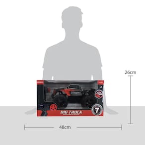 O Veículo Big Truck Garagem S.A. vai encantar os amantes de carros! Um incrível veículo de controle 7 funções que pode ser pilotado para todas as direções e um design arrojado de pick up com cabine dupla, grandes pneus de borracha off road, suspensão e para-choque! Ele é feito de plástico bolha que por ser leve e consistente aumenta a performance, perfeito para grandes obstáculos. Além de ter bateria recarregável, seu controle remoto é de 2.4 GHz, por ser multifrequência permite um alcance maior.A brincadeira vai ficar muito mais radical com o Veículo Big Truck Garagem S.A.