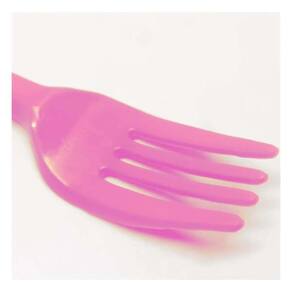 Combine os garfinhos com outros itens descartáveis na cor rosa para uma decoração harmônica