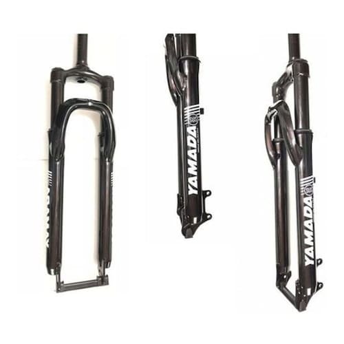 Ficha Técnica: Marca: Yamada Modelo: Aro 29 Material: Aço Curso: 100mm Cor Preto Compatível com freio a Disco Espiga: Over Aheadset de 28.6mm Comprimento da espiga: 25cm Compatível com eixo: 9 e 10mm Bengala: 26mm Canela: 32mm Peso: 2745g