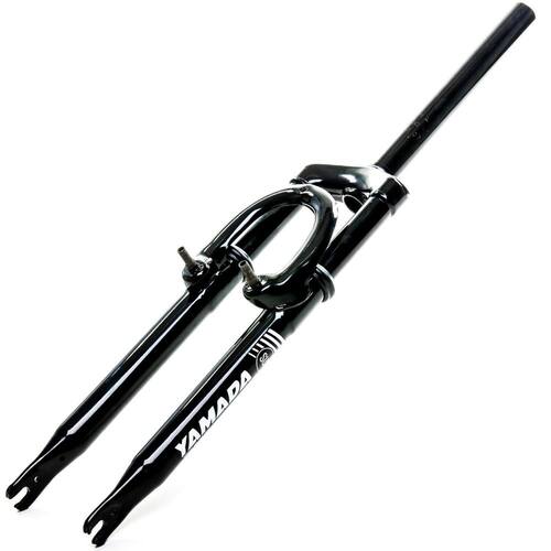 Modelo: MXFK-5 Material: Aço Exclusivo para bicicletas aro 26 Medida: 28,6mm ahead set sem rosca Trava: Não Comprimento espiga: 25cm Amortecimento através de molas Uso: Urbano Freio: V-Brake Peso Aprox.: 2080g Cor: Preto Marca: Yamada