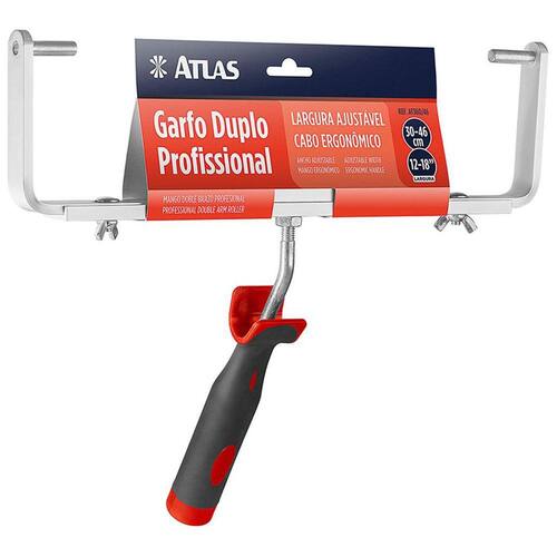 DESCRIÇÃO DO PRODUTO: Garfo com largura ajustável para rolos de pintura de 30 a 46cm e cabo emborrachado e ergonômico com rosca para prolongador. Dois pontos de fixação do rolo para melhor distribuição de força no momento da aplicação. Estrutura de alumínio que confere leveza, força e durabilidade ao produto. Usar com as bandejas da linha Duplo Profissional.