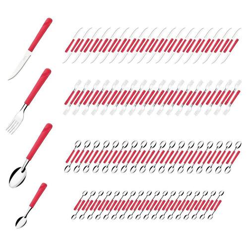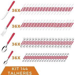 Garfo Colher Faca Colher Chá Inox Vermelho Luna 144 Peças