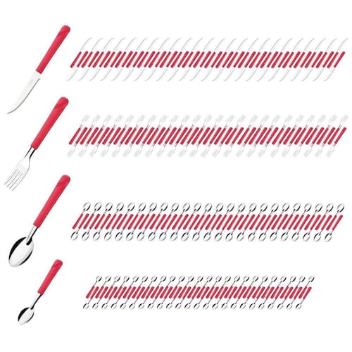 Garfo Colher Faca Colher Chá Inox Vermelho Luna 192 Peças