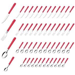 duradoura, o conjunto de talheres de mesa da linha Luna com cabo vermelho é uma