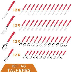 Garfo Colher Faca Colher Chá Inox Vermelho Luna 48 Peças