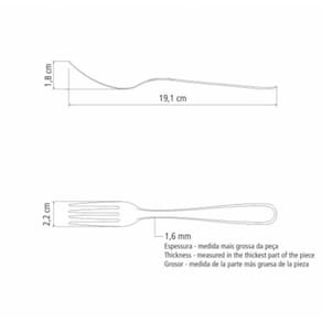 Garfo De Mesa Tramontina Angra Em Aço Inox Uma mesa bem-posta é uma presente que todo mundo pode se dar todosos dias. Talheres e acessórios brilhantes, uma toalha bonita e pequenostoques de decoração tornam qualquer momento mais especial. Afinal, umaboa refeição deve ser saboreada também com os olhos. Recomendações de Uso: Antes do uso: Antes de utilizar o , remova as eventuais etiquetas Durante a lavagem, use apenas sabão ou detergente e uma esponja macia. Outros tipos de produtos, como palha de aço, poderão riscar ou prejudicar o brilho dos águe bem cada peça a fim de remover totalmente os resíduos dos produtos de limpeza, pois, por serem abrasivos, podem prejudicar o inox. Sempre que possível, use água quente, pois renova o brilho do de uso: Evite atrito entre os talheres durante o processo de lavagem e no armazenamento, para mantê-los sem riscos. Evite o das peças com superfícies quentes. Elas provocam a descoloração do produto. Não guarde os talheres em locais úmidos. A umidade também provoca manchas. Ao usar a lava-louça, recomendamos retirar os talheres logo que tenha terminado o ciclo ??enxaguar??, a fim de que sejam secados manualmente.- Foto meramente ilustrativa. Informações Adicionais: