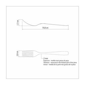 Garfo com dentes polidos na parte interna, para proporcionar maior conforto no uso, com formato apropriado para a boca e bordas arredondadas. Totalmente feito de aço inox, mantém suas características , preservando a beleza, a higiene e a durabilidade do material. Acabamento em brilho. Próprio para uso diário combina com qualquer ambiente. Pode ser lavado diariamente na máquina de lavar louças.