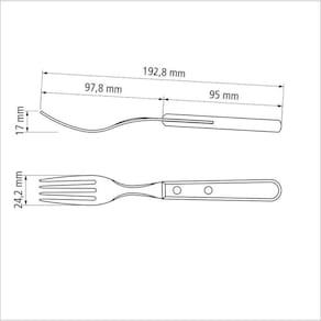 O Garfo de Mesa Tramontina Dynamic com Lâmina em Aço Inox e Cabo de Madeira Natural é um talher que não pode faltar na sua mesa. Perfeito para o dia a dia e cheio de estilo, possui cabo de madeira natural que garante um visual mais rústico para sua mesa. Além disso, possui rebites de alumínio. Prático e com qualidade, ele é produzido com lâminas em aço inox, proporcionando maior resistência e durabilidade. Um item com a qualidade Tramontina, que você já conhece e confia! Orientações A lâmina de aço inox conta com maior espessura e uma estampagem do aço que garante maior resistência, evitando deformações. Cabo de madeira naturalRebites de alumínio. Características Gerais EAN13 7891112035386 DUN14 17891112035383 NCM 8215.99.10 Peso Líquido 0,0300 kg. Peso Bruto 0,0300 kg. Metragem 0,000043 m³. Dimensões Embalagem (Compr. X Larg. X Alt.) 195x 22x 10 mm. Observações Antes da primeira utilização, lave bem a peça e seque-a.Produto cortante e perfurante: tenha cuidado ao manusear e mantenha fora do alcance das crianças.Para maior durabilidade do produto recomenda-se secar bem antes de guardar, mesmo após lavagem em máquina. Para descarte do produto e embalagem siga as orientações de reciclagem vigentes.