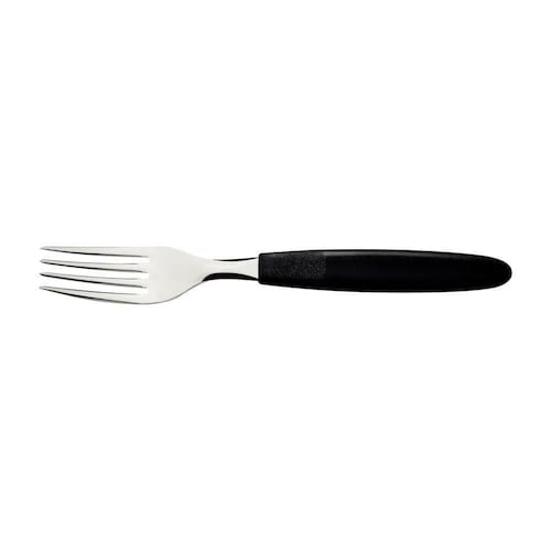 O Garfo de Mesa Tramontina Ipanema com Lâmina em Aço Inox e Cabo de Polipropileno Preto é aquele talher que todo mundo ama, pois combina com todos os estilos de mesa. Perfeito para uso diário, ele tem lâmina produzida em aço inox com espessura que fornece maior resistência e durabilidade. Seu cabo é em polipropileno na elegante cor preta e proporciona um manuseio super confortável, além de garantir uma mesa muito mais estilosa. É muito fácil de limpar e pode ir à máquina de lavar louças. Um produto especial que sua casa merece!OrientaçõesA lâmina de aço inox garante maior resistência devido a espessura do aço e a estampagem da lâmina.