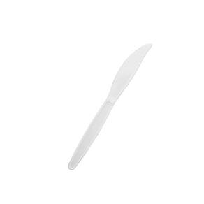 Faca plástica master para refeição na cor branca , fabricada em poliestireno e pigmentos de alta pureza. São produzidos com matéria prima e pigmentos virgens, que permitem serem usadas em qualquer ocasião. Produto não tóxico, versáteis e higienicos.