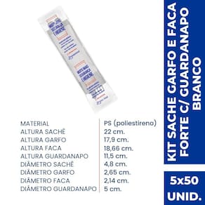 O Kit Sachê Garfo e Faca Forte com Guardanapo é perfeito para o ambiente Food Service! Tenha praticidade e higiene na hora de servir clientes e convidados com talheres resistentes e guardanapo para tornar sua refeição ainda mais completa.