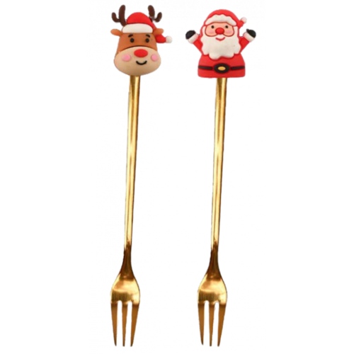 ? Encanto de Natal na Mesa ?Garfo  Papai Noel – Dourado (2 un.
