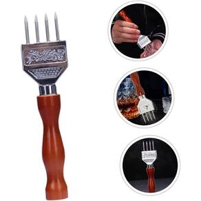 Garfo pica gelo 4 pontas em aço inox e cabo em madeira de lei, Deluxe. O garfo picador de gelo tem seu cabo todo em madeira de lei resistente, a região de ataque conta com 4 pontas com corpo todo em aço inox de ótima qualidade, resistente a ferrugem/oxidação. Este é um utensílio super elegante, muito utilizado para quem pratica arte no gelo ou deixar o gelo na forma desejada para compor de maneira mais sofisticada o coquetel ou sua bebida preferida. Conta com 4 pontas bem afiadas e pontiagudas todas em aço inox de ótima qualidade o que facilita a quebra enquanto esculpe o gelo, isso garante resistência e pouco Esforço durante a arte.